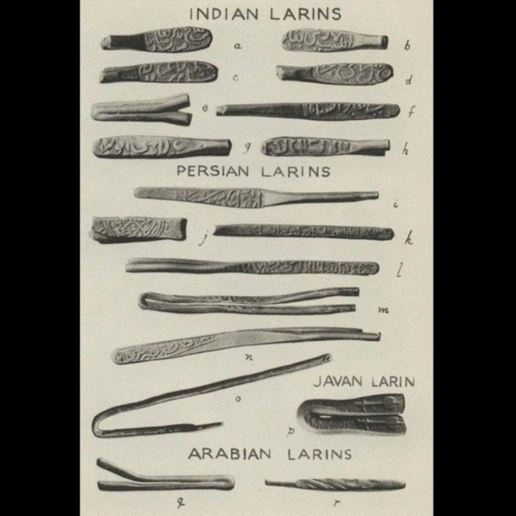 (در پاییز سال ۱۹۲۵، در گرامپولای سری‌لانکا، کوزه‌ای سفالین پر از سکّه کشف شد. بخش اعظمی از مسکوکات، قطعات نقره‌ای به نام لارین بودند. لارین نخستین بار در شهر لار ایران، به‌وسیله‌ی یک پادشاهی محلّی ضرب شد، و نام خود را از همین شهر گرفت. در آسیا به آن لاری گفته می‌شد، و اروپاییان آن را لارین می‌نامیدند. ثبات و عیار این پول خصوصی سبب رواج آن در تجارت شد و قلمرو تجاری خلیج فارس و اقیانوس هند را در بر گرفت.)